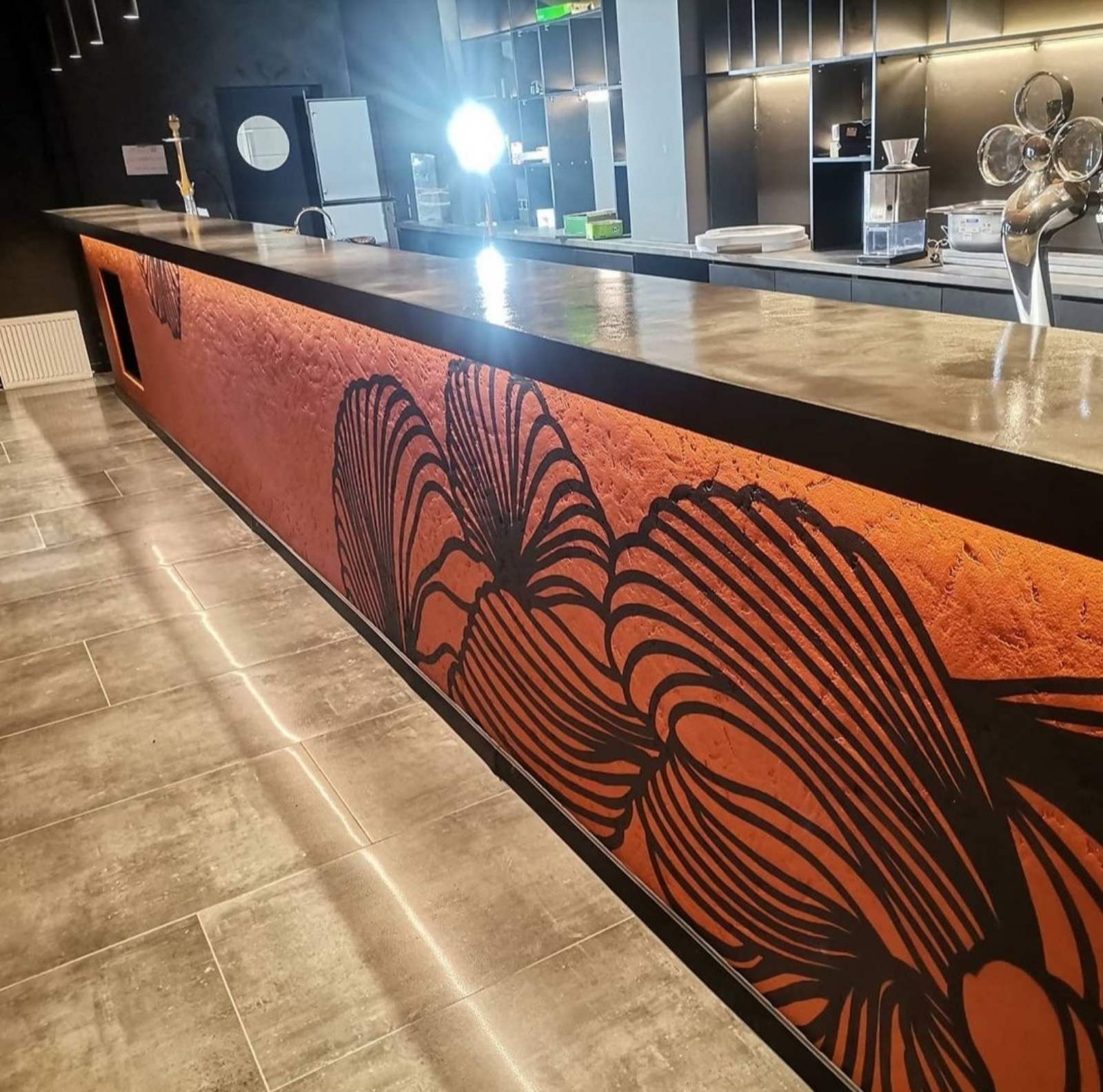 Барная столешница из микроцемента выполнена в Гомеле. Бар. Материалы использовались DeHust, фактура CemSolid. Срок выполнения 6 дней.